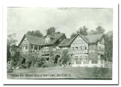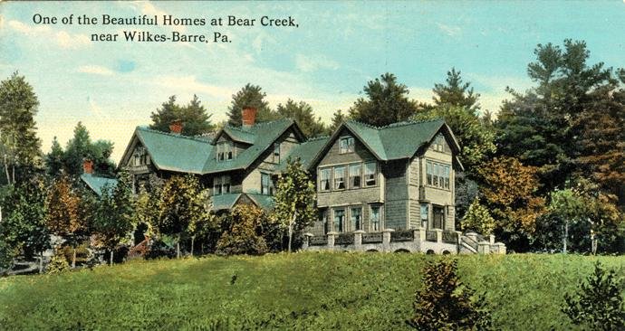Near Albert Lewis’ home, perched on a high knoll, stood the stately home of Daniel Stull, a Lewis business associate, who operated the village’s general store. This home was passed on to Arthur L. Stull, who became a partner in the ice business with Lewis. Stull sold the house to the prominent Reynolds family of Wilkes-Barre in 1892. Several other large seasonal residences, constructed by Lewis friends from Wilkes-Barre’s elite, stood nearby along Bear Creek Boulevard on land leased from Lewis.