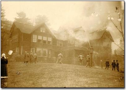 It was at Mokawa Inn that Lewis entertained Teddy Roosevelt (#12) in 1910 and 1914. William H. Taft (#13) enjoyed the Lewis hospitality in June of 1919. On November 7, 1922, a fire (#7, #8) destroyed the central portion and south wing of the Mokawa Inn. Lewis retained Wilkes-Barre architects Donald F. Innes and Charles L. Levy to reconstruct the home as a Tudor Revival mansion. Lewis lived in the home for only six months before his death in 1923.